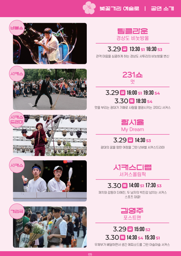 경주 대릉원돌담길 벚꽃축제의 3일간 일정입니다. 각 공연별 시간과 정보가 사진에 있으니 사진을 천천히 보면서 3일간의 일정을 확인하세요~
